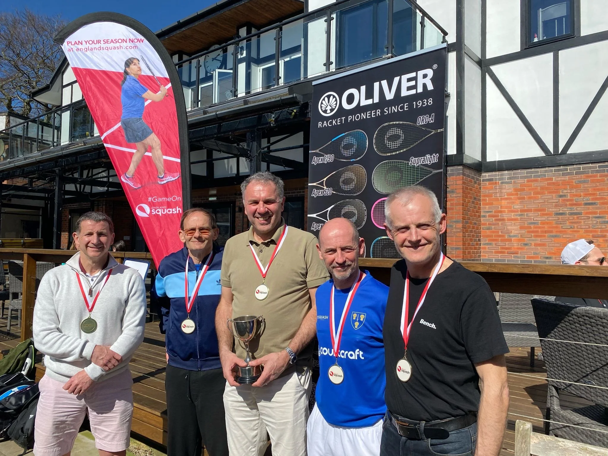 “This weekend, the Cheshire O55 squash team showcased exceptional teamwork and dedication, culminating in their victory at the National O55 Inter Counties squash tournament. Facing tough competition from Lancashire, Yorkshire, Merseyside, Avon, Middlesex, and Surrey, Cheshire persevered through challenging matches to emerge triumphant in the final against a strong Surrey team with a 3-2 win. Congratulations to the Cheshire team for their well-deserved victory and for exemplifying the true spirit of sportsmanship and teamwork”.